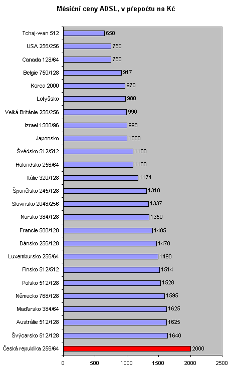 V květnu roku 2004 se Evropská unie zřejmě dočká rozšíření o další desítku zemí převážně z východní Evropy. Zatímco z úst některých politiků posloucháme věty o podpoře informatizace, Česká a Slovenská republika zůstávají jediné mezi zeměmi vyjmenovaných v Kodani, které ještě nemají alternativu DSL připojení k Internetu. Vyplývá to rovněž z cenového přehledu, který aktualizuje občanské sdružení Internet pro všechny (http://www.internetprovsechny.cz).