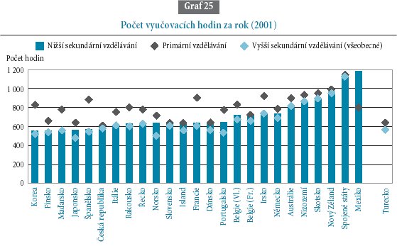 Průměrní jsme ve velikosti třídy (počtu žáků ve třídě), kde většina zemí uvádí čísla kolem 20, pouze v Koreji a Japonsku to je přes 30. Ohledně počtu žáků na učitele jsme také v průměru sledovaných zemí, a to většinou zcela přesně. Konkrétně jde o 20 a méně žáků. V platech učitelů jsme předhonili Slovensko a Maďarsko, ale například v Portugalsku jsou dvojnásobné. Spíše pod průměrem jsme v počtu vyučovacích hodin. Český učitel odučí 600 hodin ročně, zatímco americký skoro dvojnásobek! Ve většině států musejí odučit více hodin než u nás pedagogové na prvním stupni.