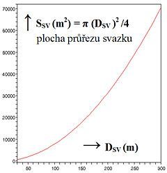Graf na obr. 17 dává představu o ploše průřezu svazku, pokud známe průměr svazku.