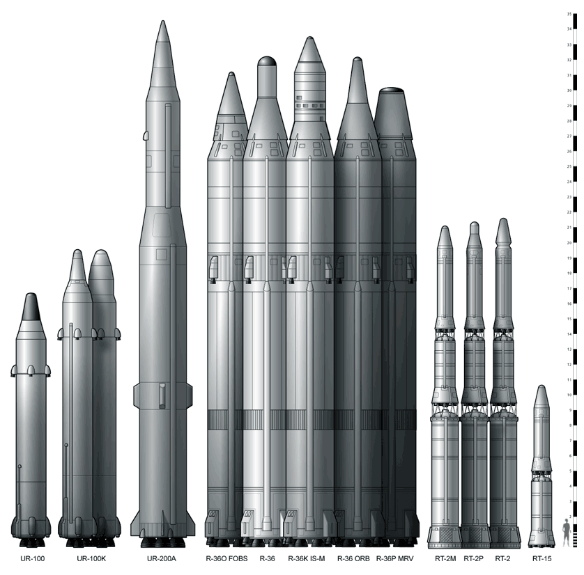 Dvoustupňová R-36 z OKB Južnoje vznikla jako odpověď na americký typ Titan II a zároveň jako reakce na požadavek "globální rakety", tj. střely schopné z území SSSR zasáhnout takřka kterékoli místo na světě. Nová raketa měla fungovat nejenom jako klasická mezikontinentální, ale i jako nosič hlavice schopné pohybovat se částečně po oběžné dráze (FOBS) a rovněž jako střední kosmická nosná raketa. Výběrového řízení se kromě R-36 účastnila Koroljovova střela GR-1 a typ UR-200 od Koroljovova velkého soupeře Čeloměje. Letové zkoušky vítězné R-36 byly zahájeny v září 1963 a v listopadu 1966 dosáhl první pluk střel R-36 bojové způsobilosti. Vznikly čtyři verze, včetně R-36Orb typu FOBS. Bylo zhotoveno přes 300 kusů R-36, z nichž poslední se stáhly koncem 70. let.