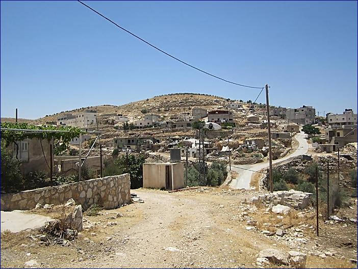 Vesnice At Tuwani v Area C (South Hebron Hills), kde Izrael staví libovolně ilegální osady. V blízkém okolí jich je několik:
