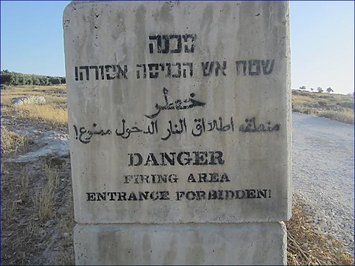 Hned za vesnicí At Tuwani, kde je pár chatrčí, je zóna, kde cvičí či do nedávna cvičili izraelští vojáci. Několik rodin odtud bylo vystěhováno, ale na popud místních a aktivistů se mohly vrátit: