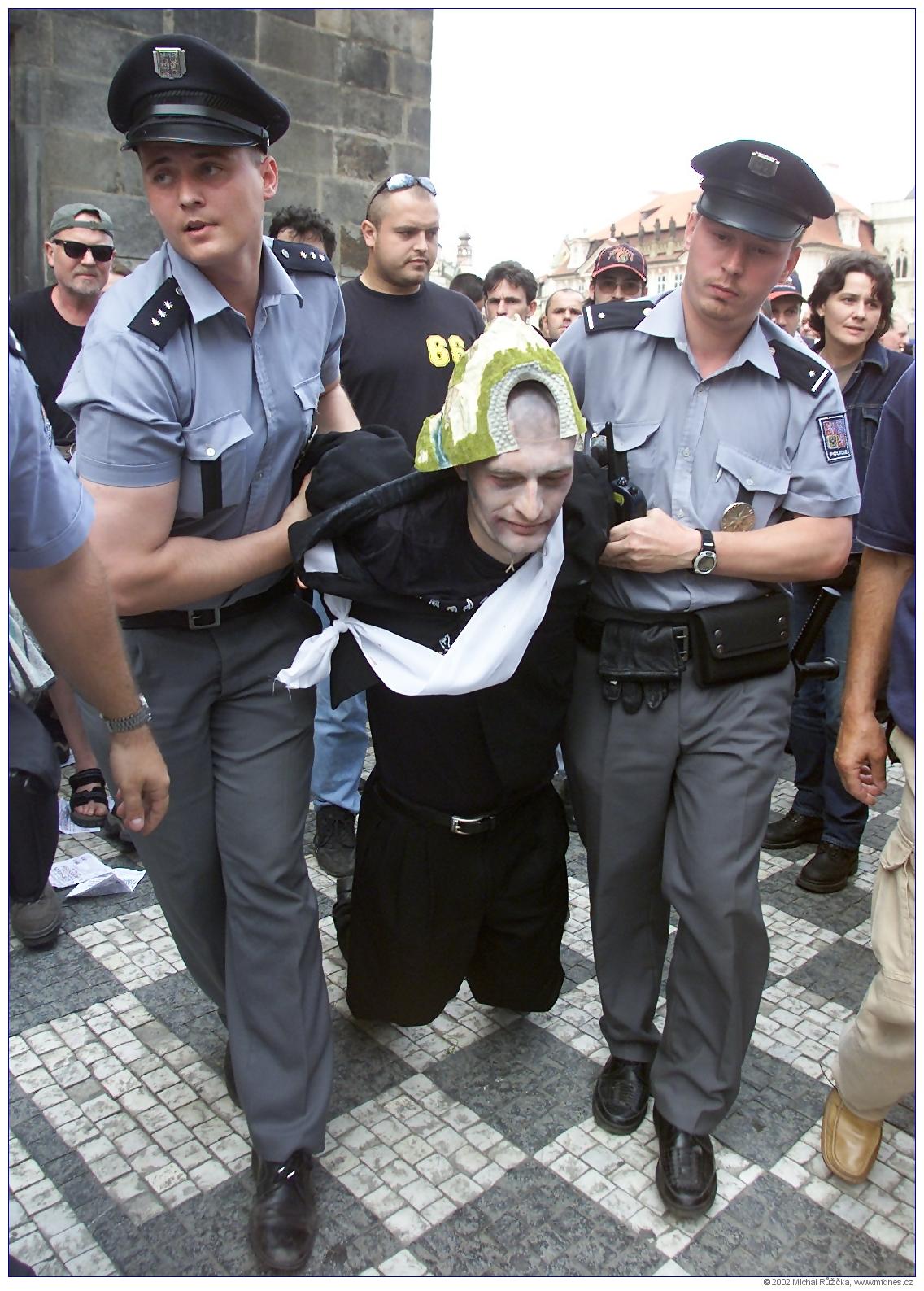 FOTOGALERIE Podivné postavy proti ANTI-NATO demonstraci 21. 9. 2002