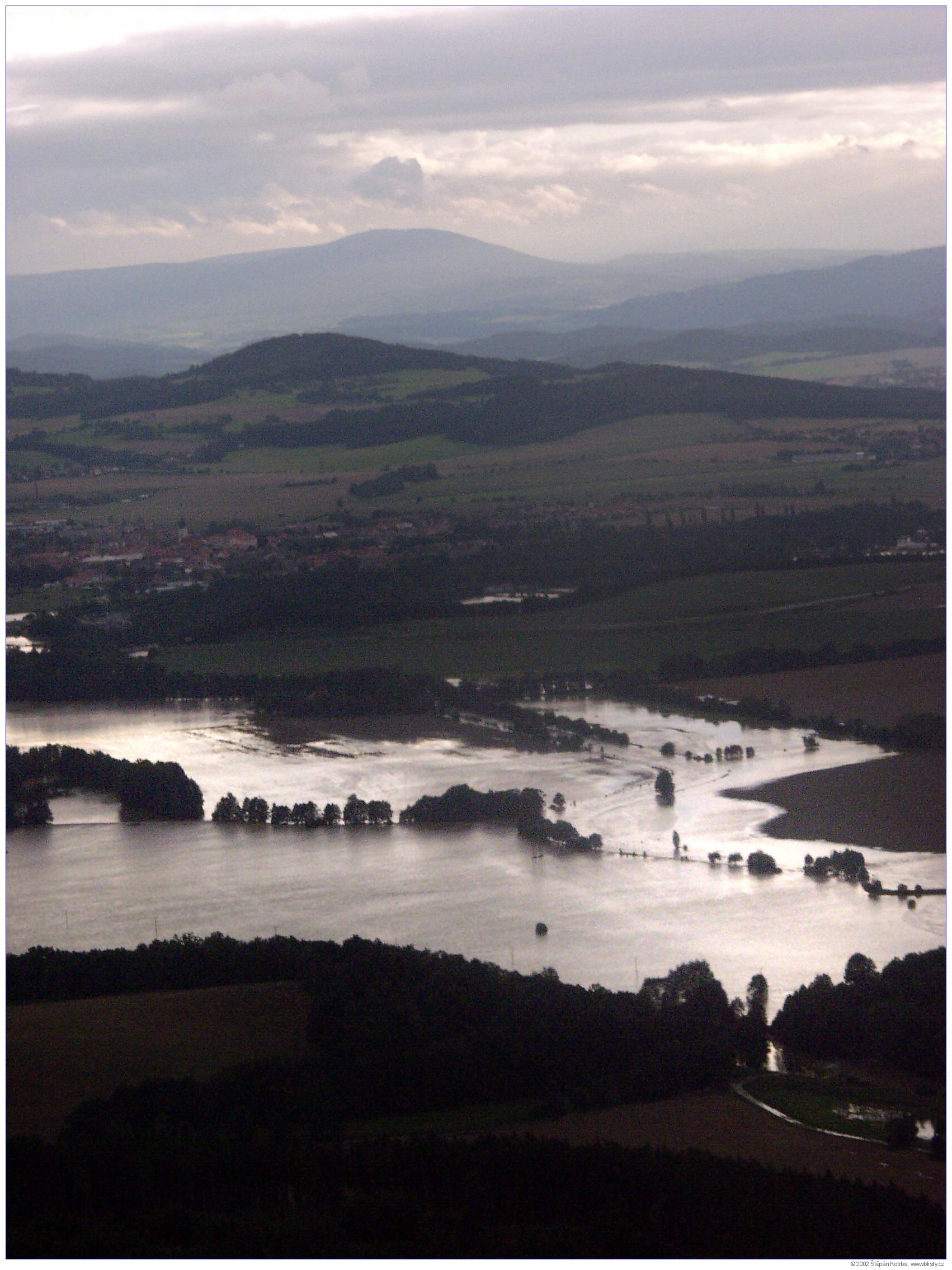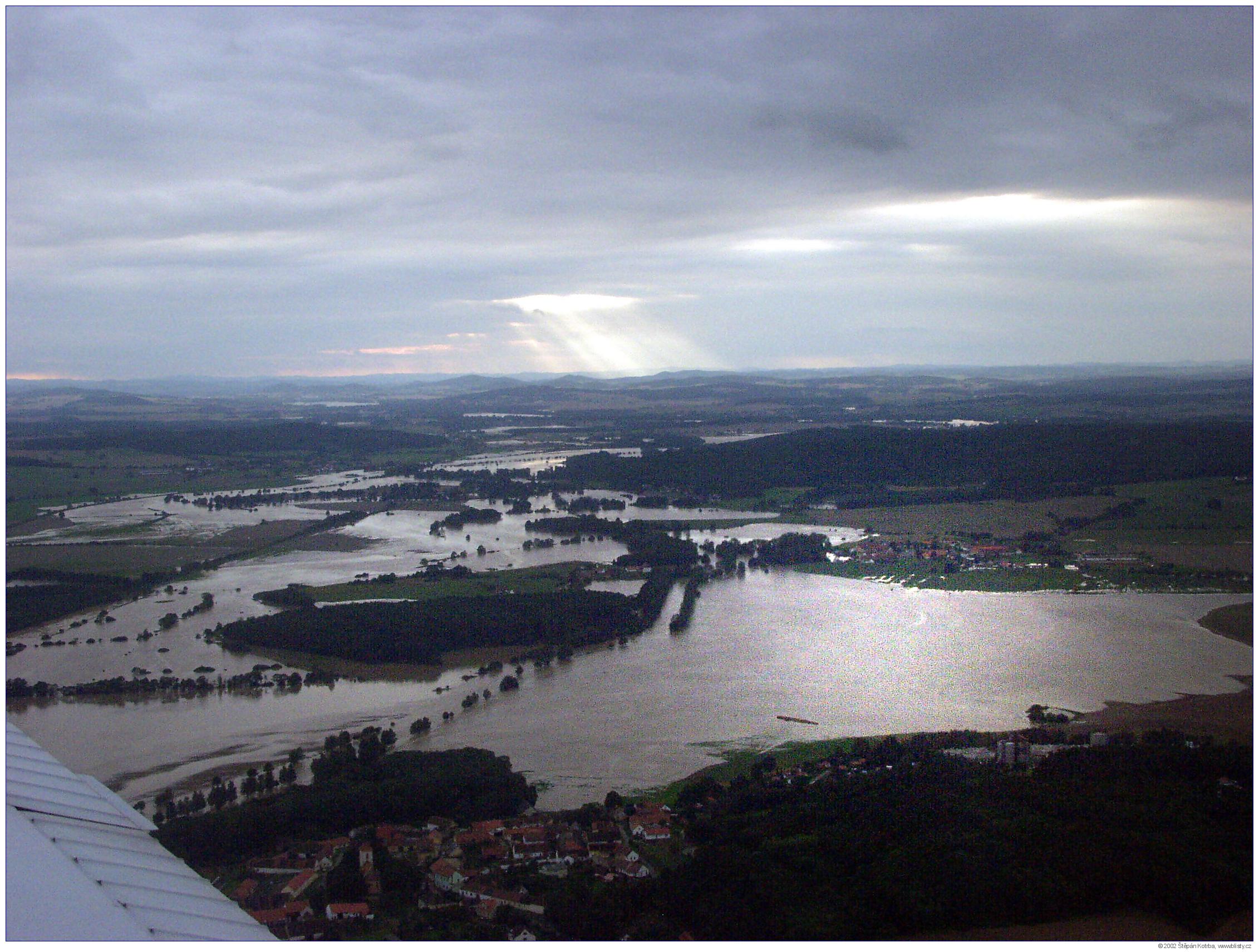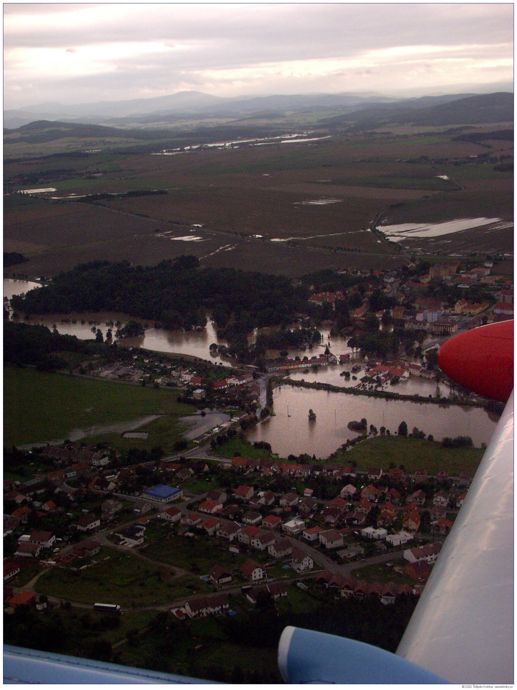 Povodeň v Týně nad Vltavou letecké snímky VIII. 13. 8. 2002 (Počet fotografií: 13)