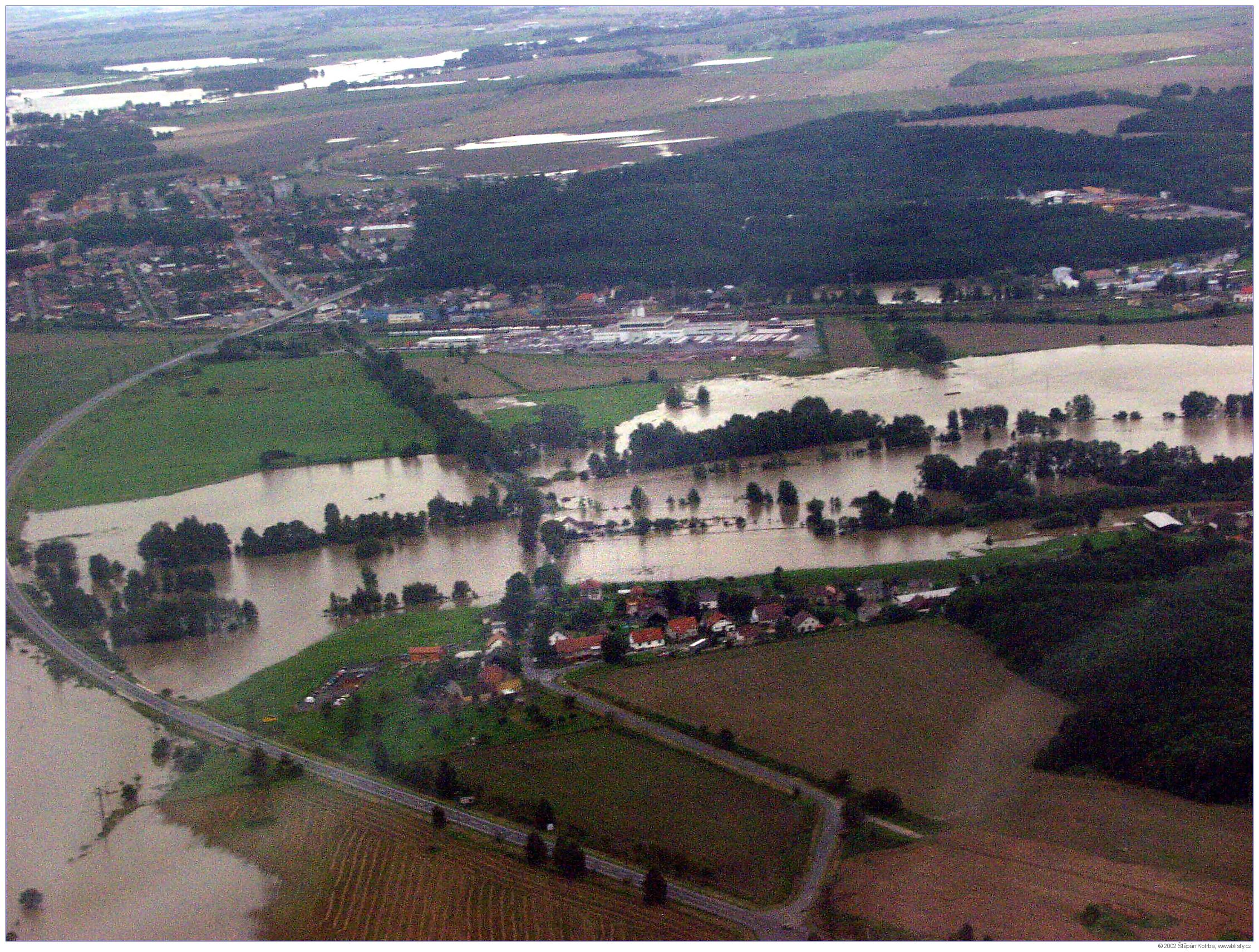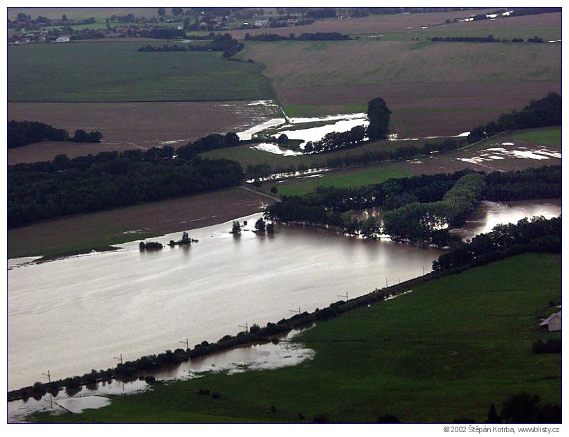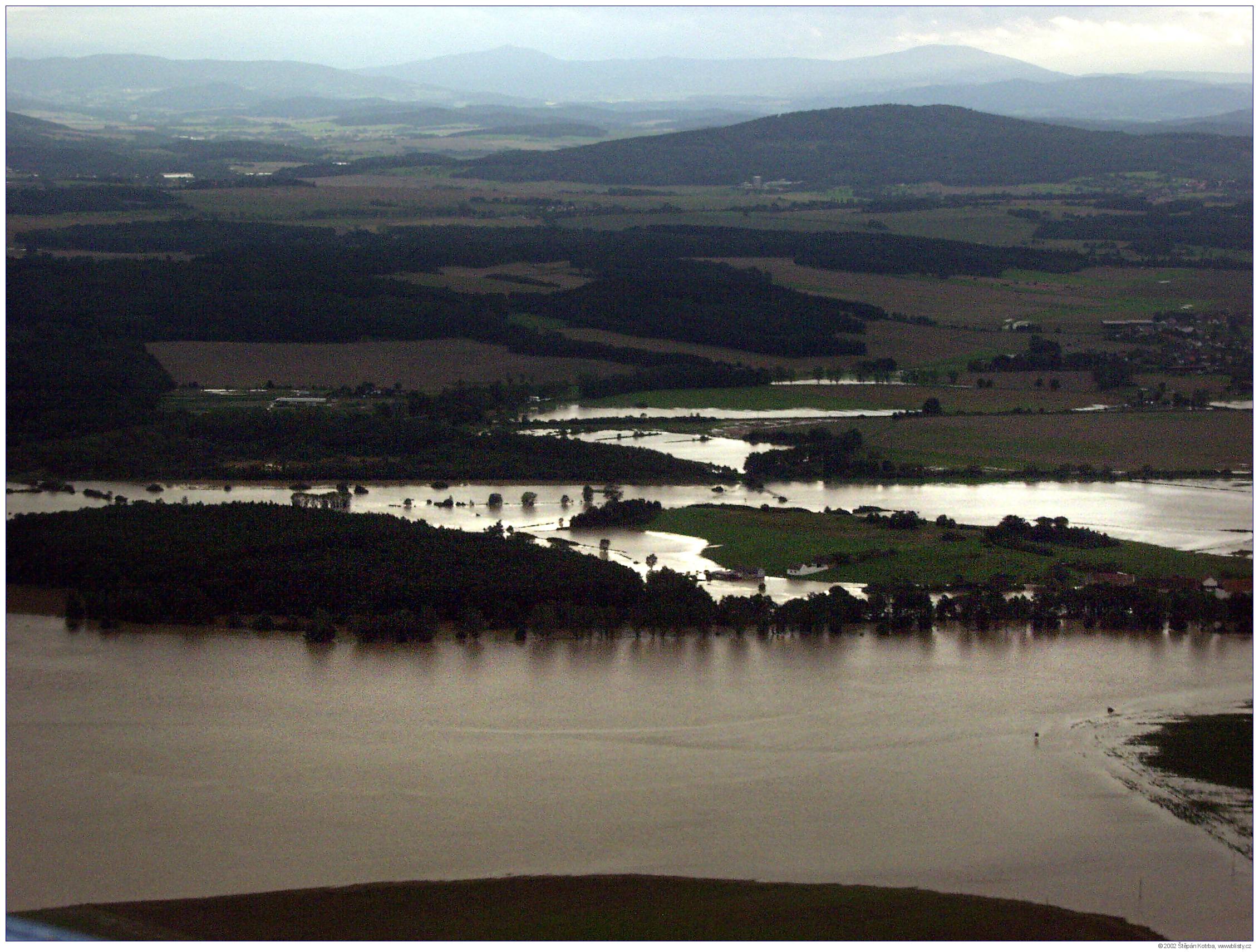 Povodeň v Týně nad Vltavou letecké snímky VIII. 13. 8. 2002 (Počet fotografií: 13)