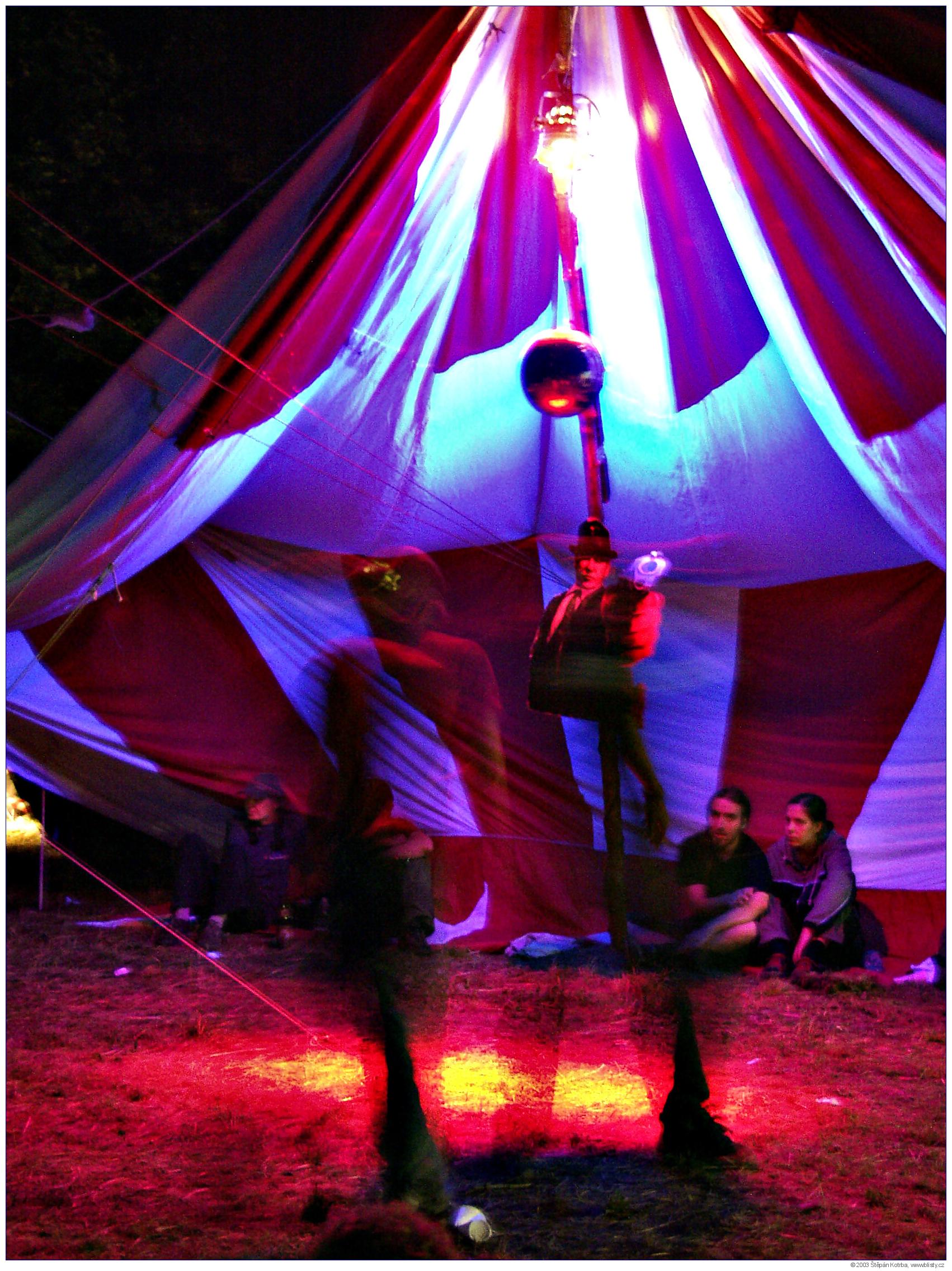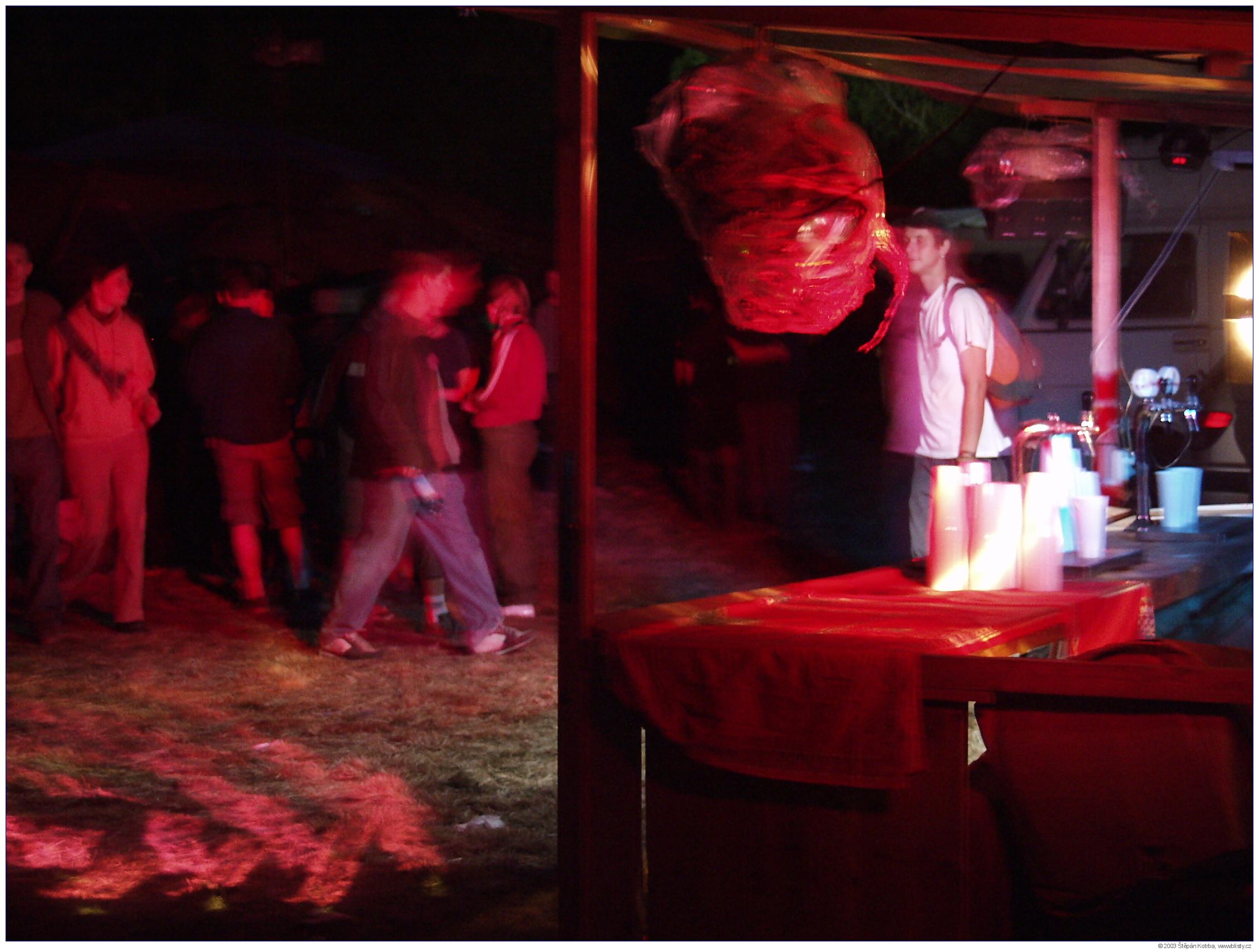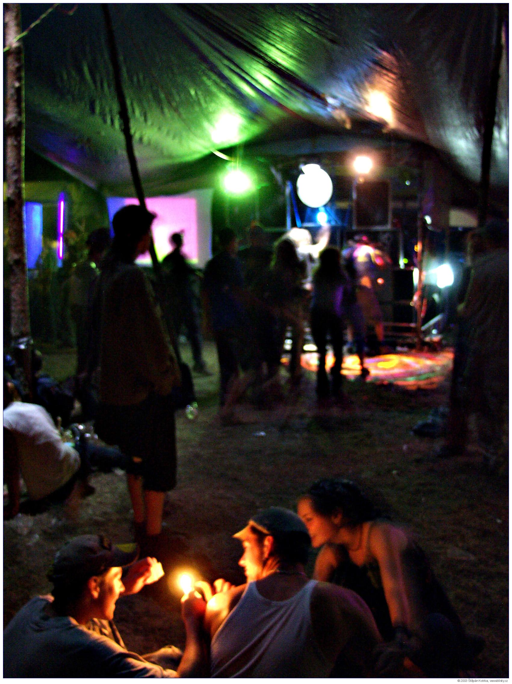 Tekno duní nejvíce v noci. Ve dne se jí, pije, spí, či vyspává kocovina předešlé noci, miluje pokud je s kým, obdivuje hezký cizí holky či drahý cizí reprobedny, shání hulení, cigára či dřevo na táborák; případně se řeší otázka, kam se schovat před vedrem. Jako lék na kocovinu se doporučuje navštívit kyslíkový stan. Západ slunce vnímáte s ulehčením... V noci se korzuje temnou loukou s protisměrně blikajícími stroboskopy, takže stejně nic nevidíte. Koukáte, kam šlapete a když tam došlapete, ponoříte se do rytmu a zřídka i kusu melodie. To když se muzikanti spletli, a začali hrát něco muzikálnějšího... Tekno není moc hudební, ani moc párové. Každý si svůj mozek čistí rytmem a basovými vibracemi sám a dle svého hudebního (ne-hudebního) vkusu a hlukového naturelu. Jsou tací, kteří tancují ponořeni do bedny hlavou. Říká se jim posměšně "šukači beden" a prý je to česká specialita. Nevím, neumím srovnávat... Seznamování není moc možné, neb neslyšíte ani sami sebe. Jediná možnost je dotýkat se, gestikulovat... Vynikající pro seznamování s cizinkami. Fotografovat lasery se nedoporučuje, zvláště když míří proklatě nízko proti vám. Fotografovi nezbývá než se spolehnout na aparát, ostřit po paměti a koukat se, co že to vlastně vyfotil. Můžete posoudit sami...