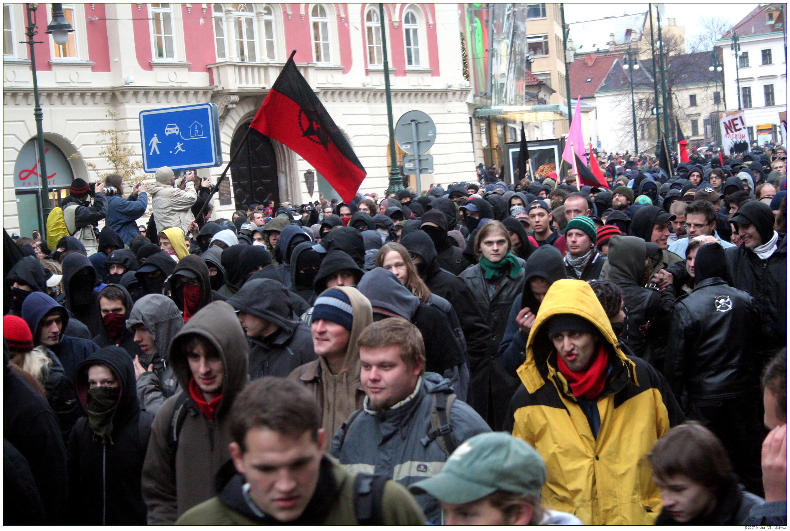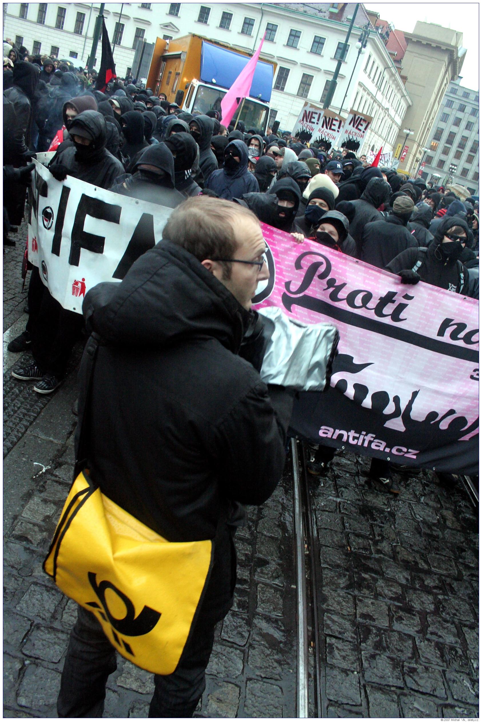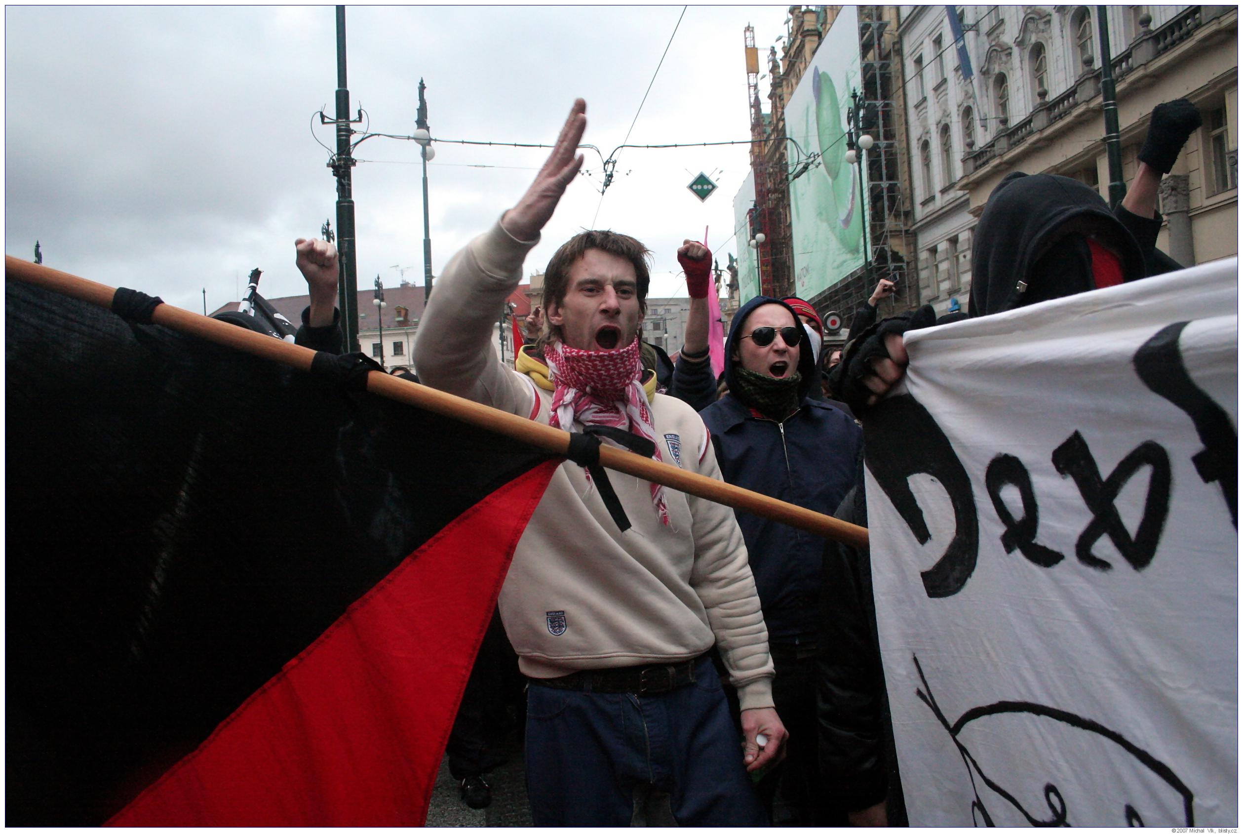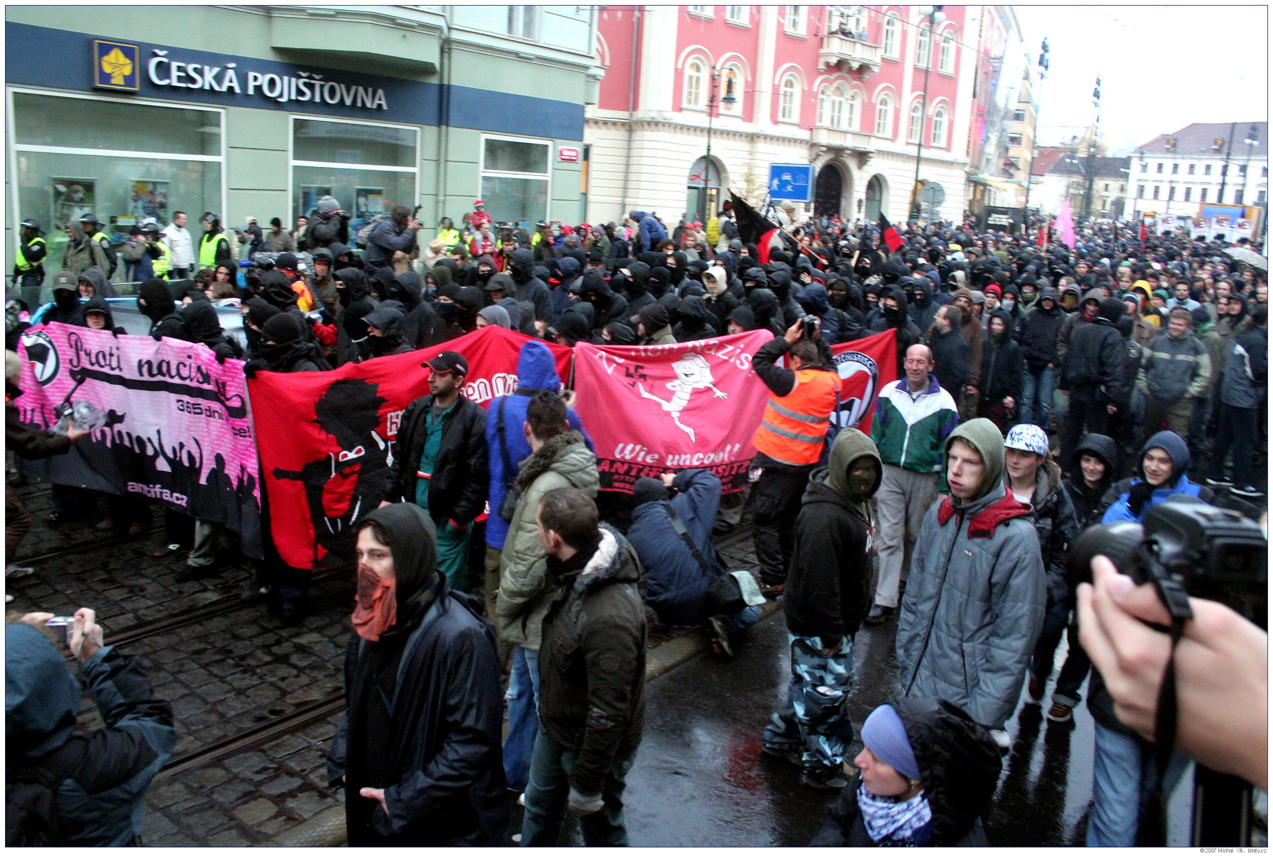 Střet policie a radikálních antifašistů s neonacisty a neonacionalisty na akci organizované Mladými národními demokraty