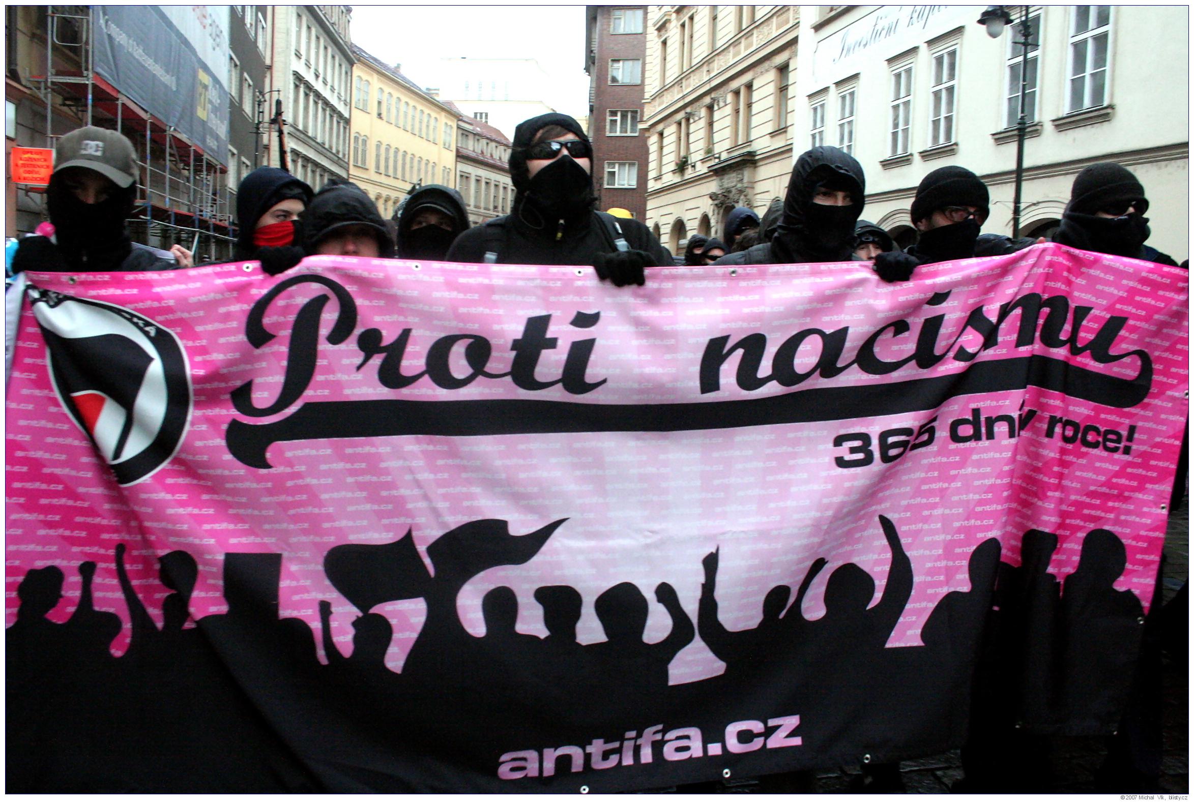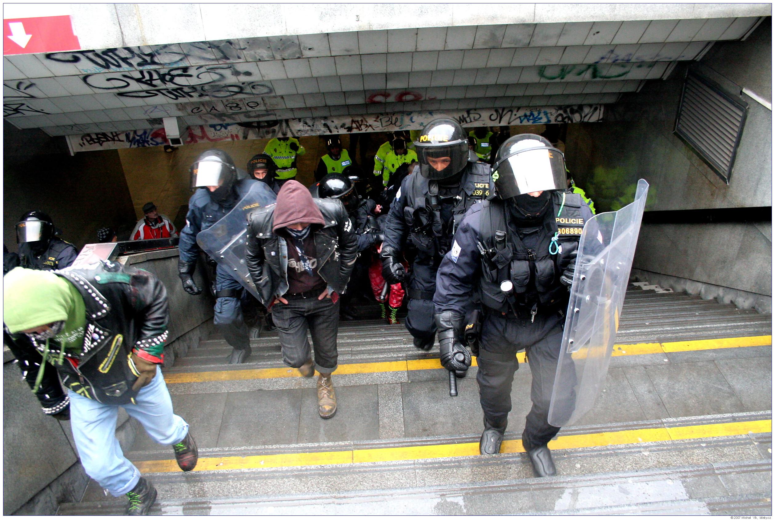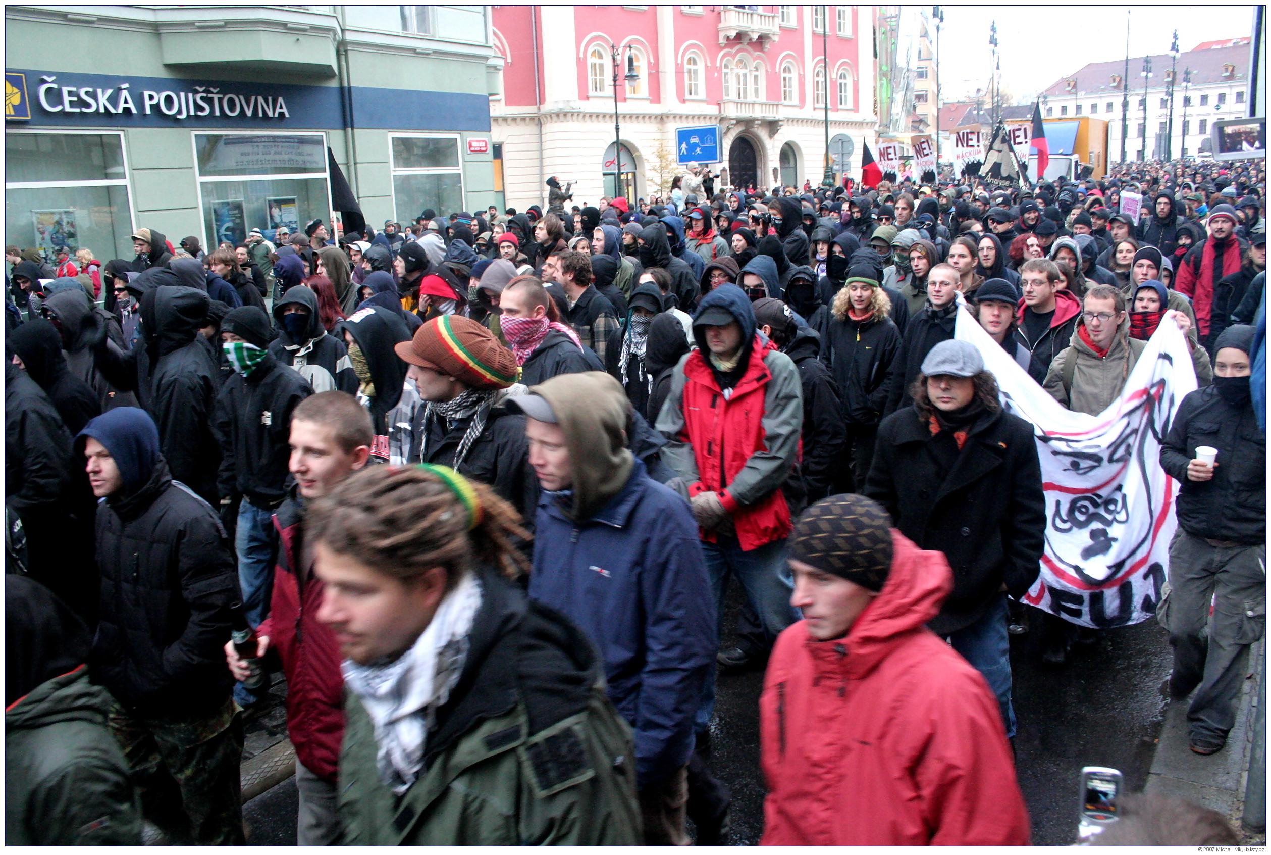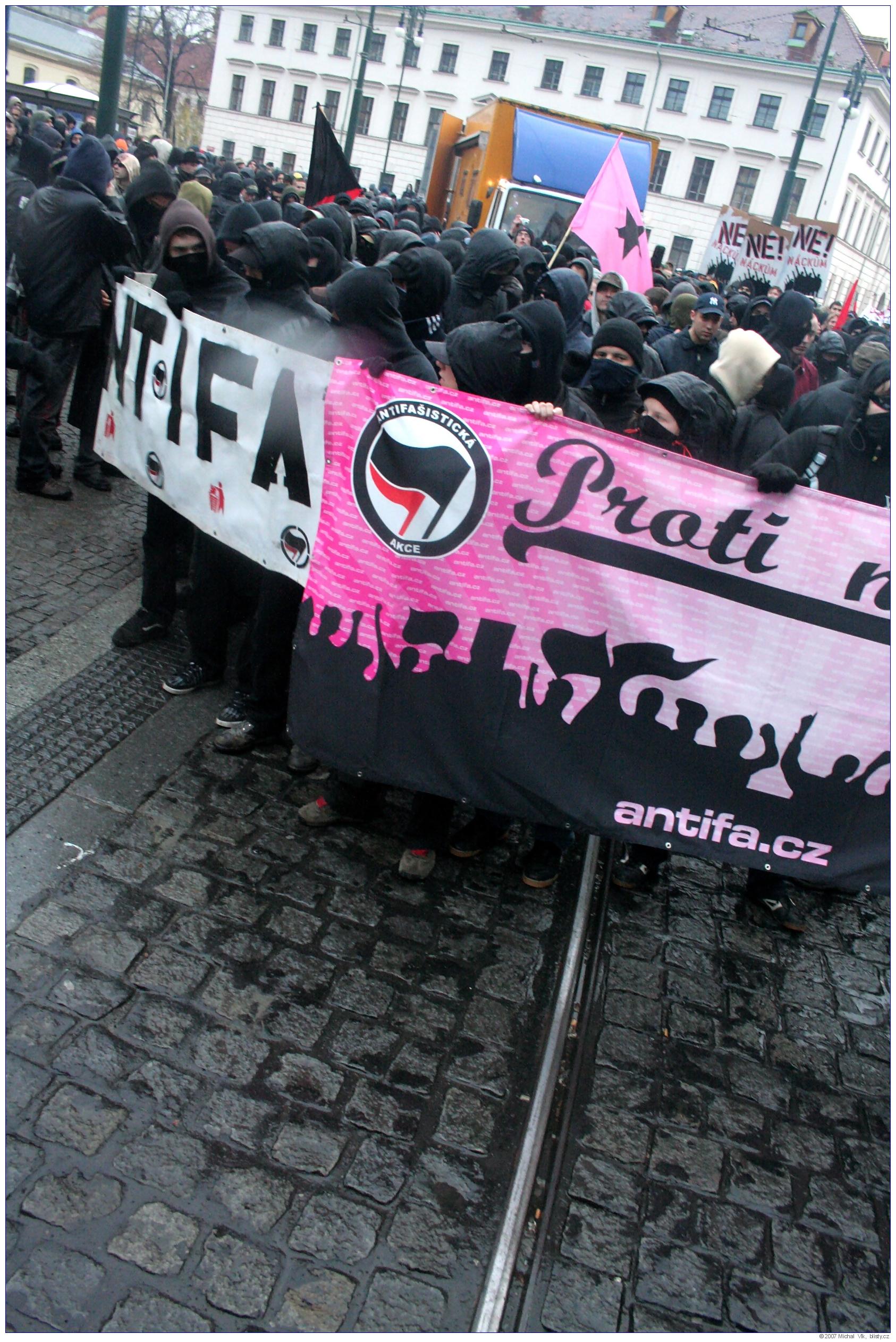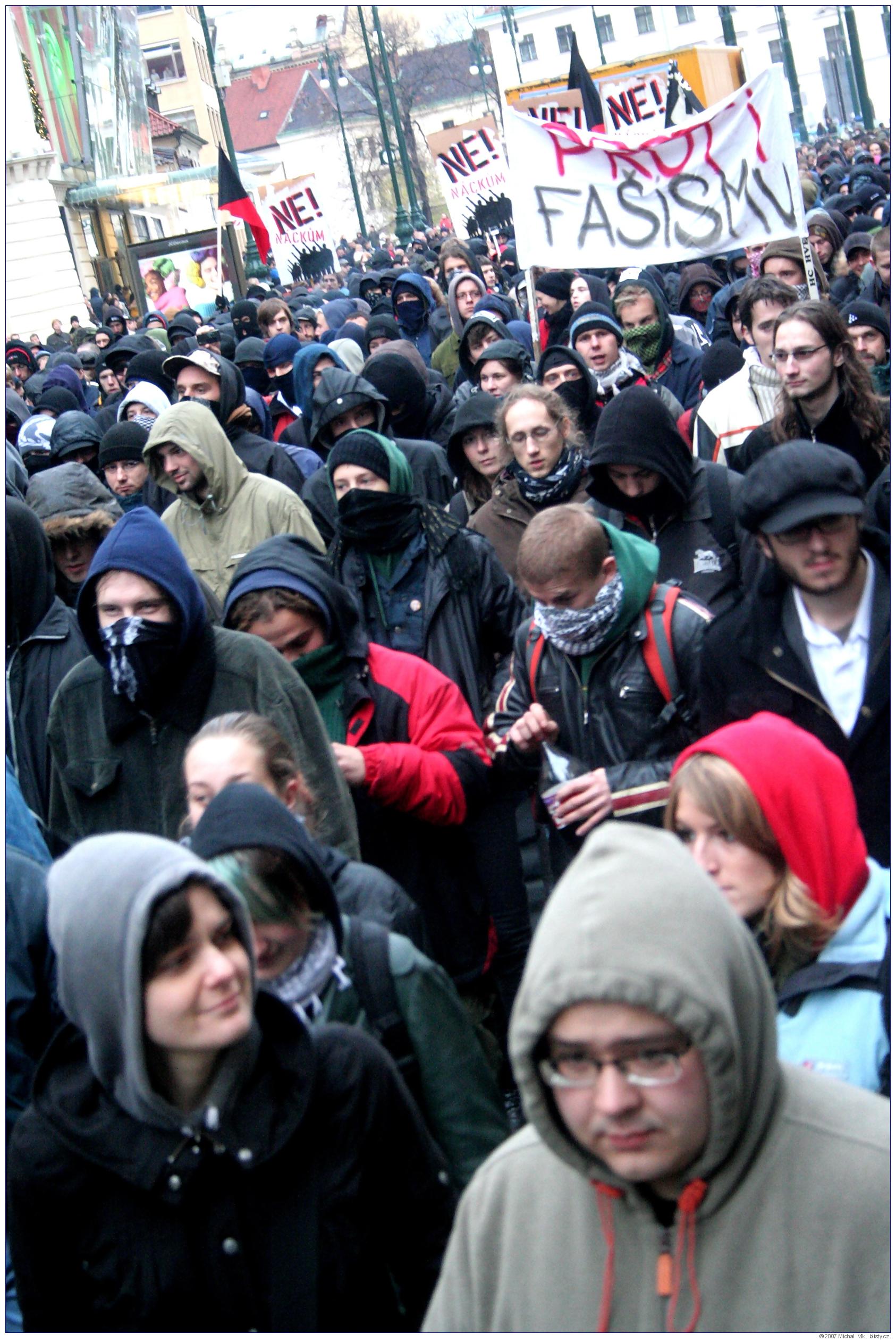Střet policie a radikálních antifašistů s neonacisty a neonacionalisty na akci organizované Mladými národními demokraty