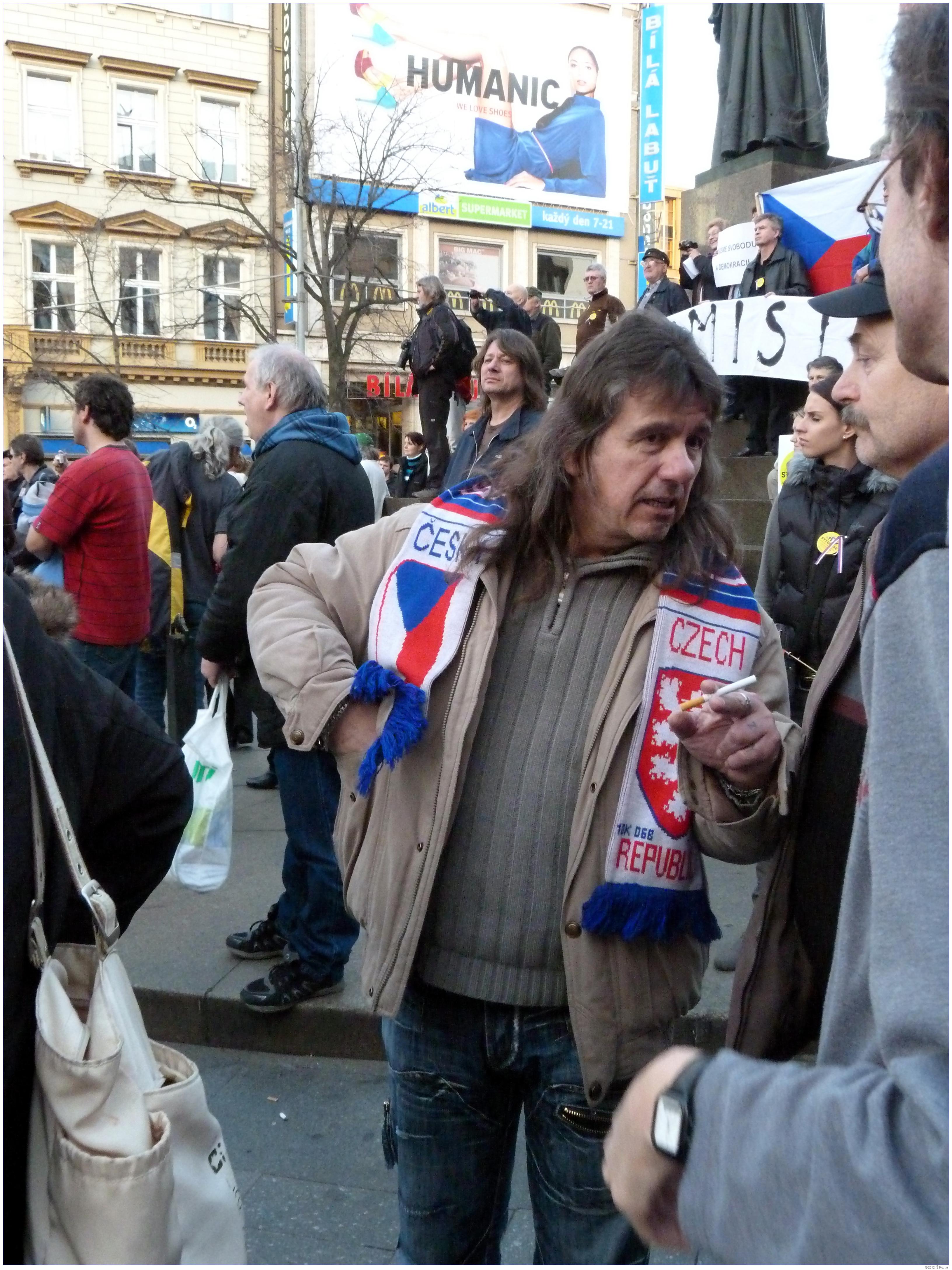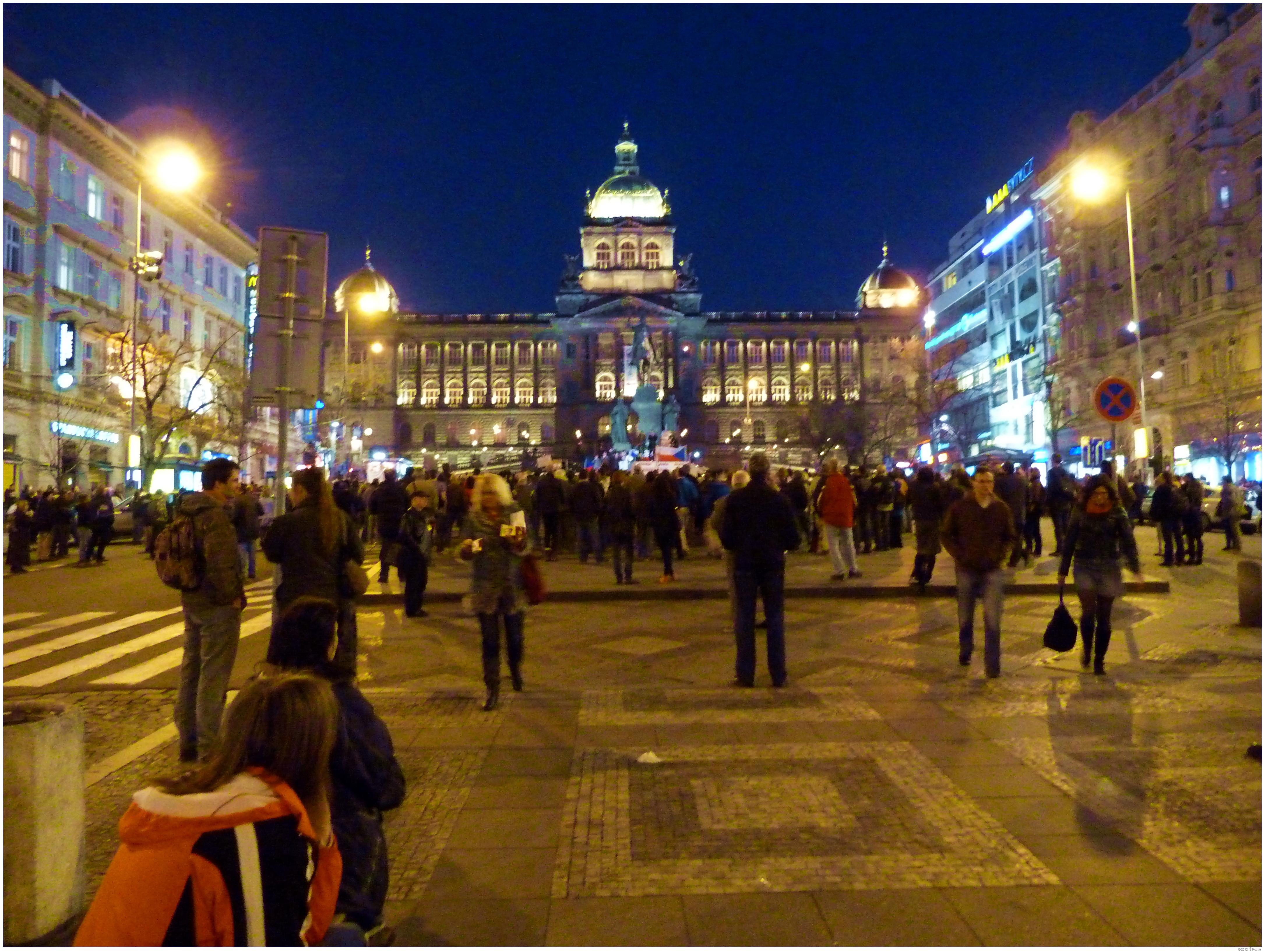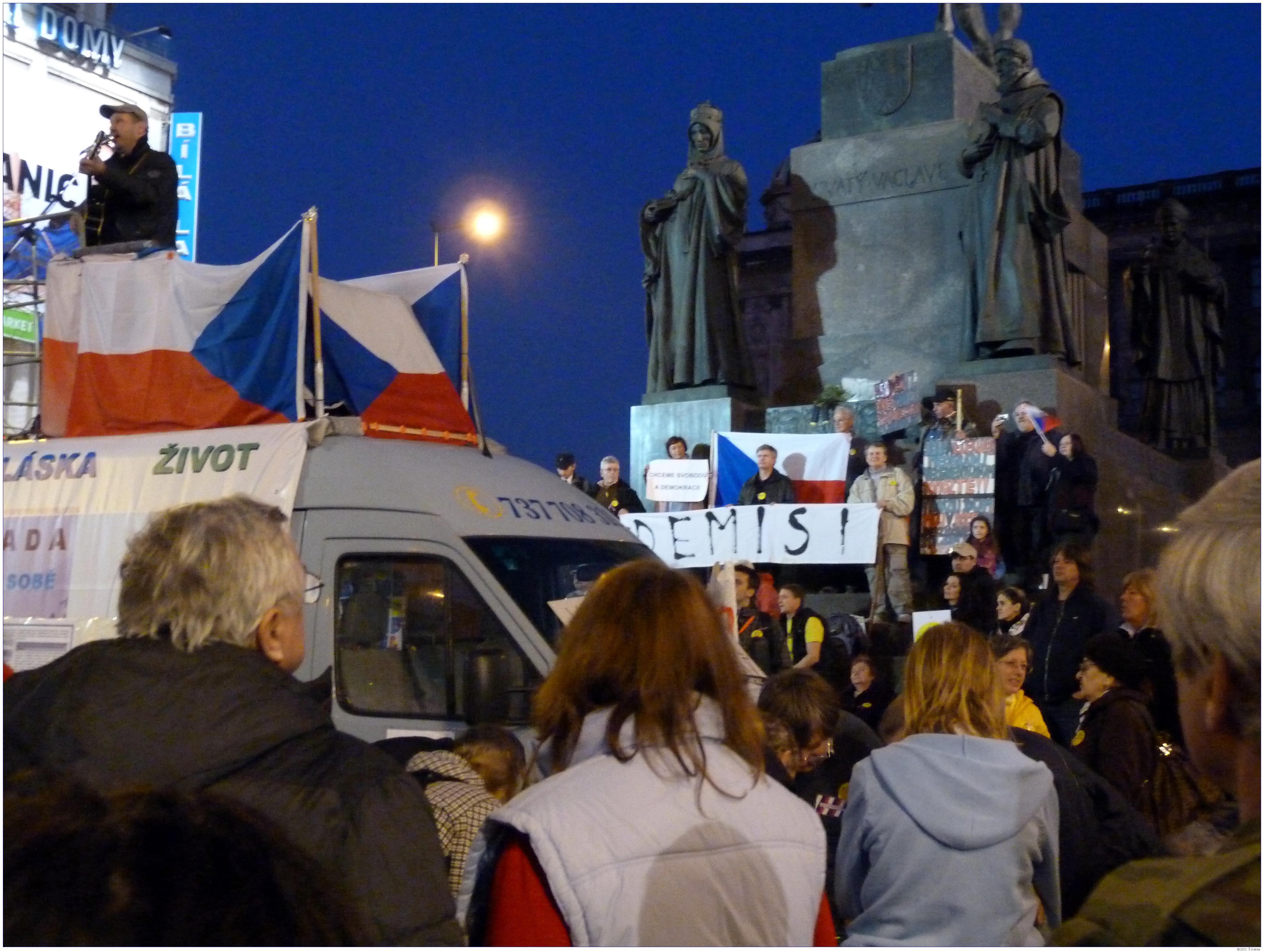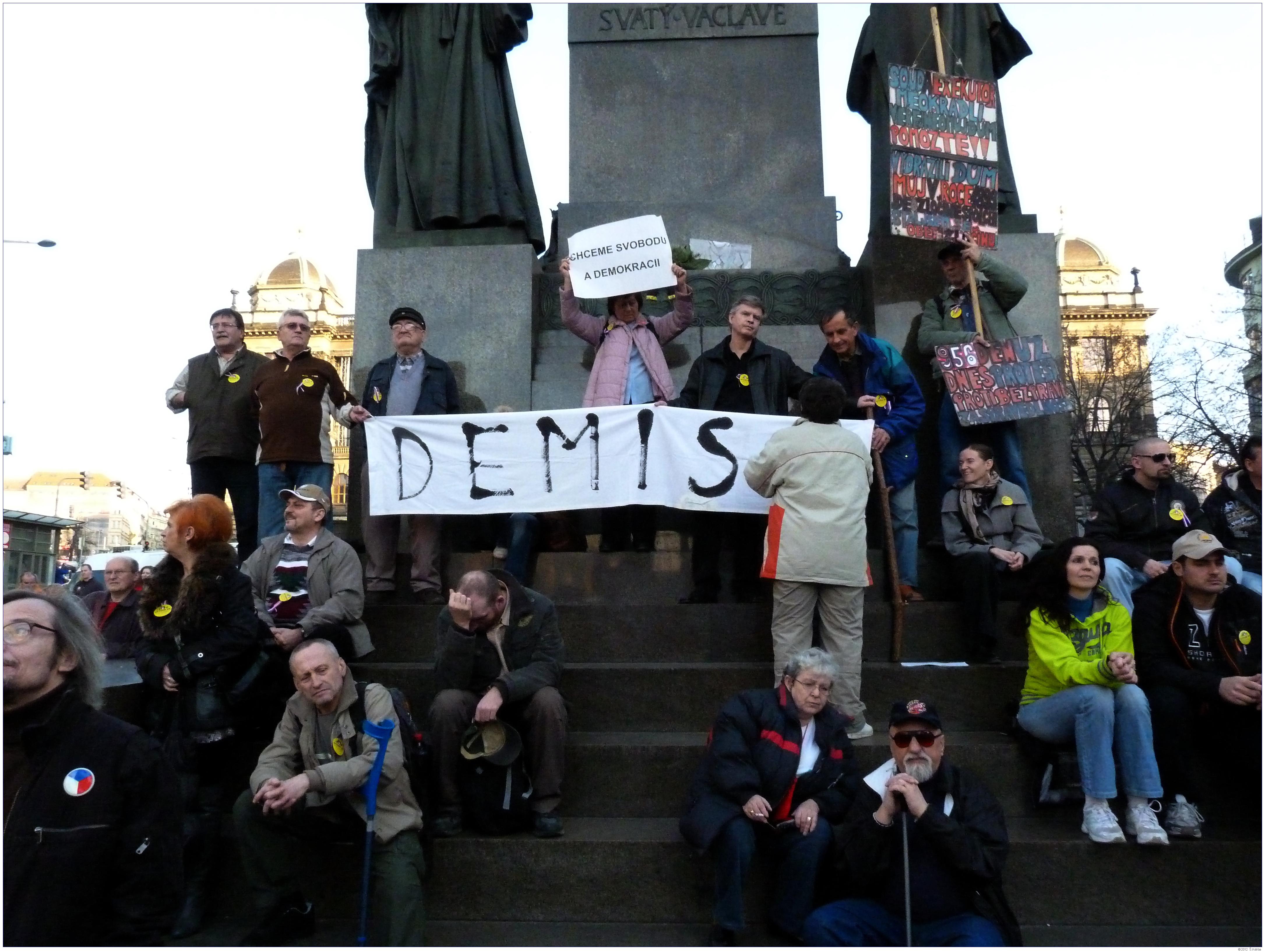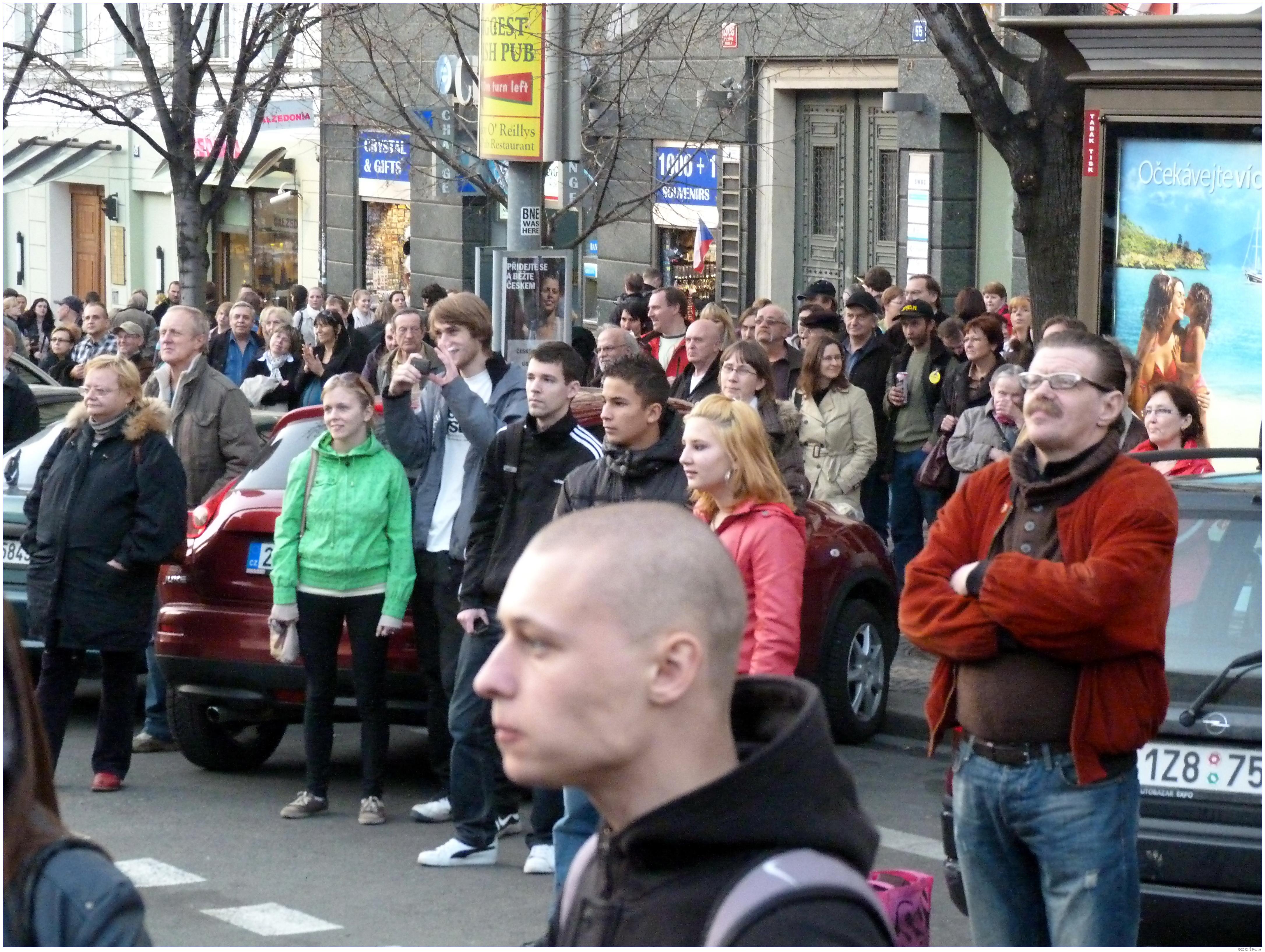 Demonstrace Marešovy "Opravdové demokracie" (SKDE), Popelkovy "Národní rady" (NR) a Ponertovy "Holešovské výzvy" Praha, 16. 3. 2012, Václavské náměstí