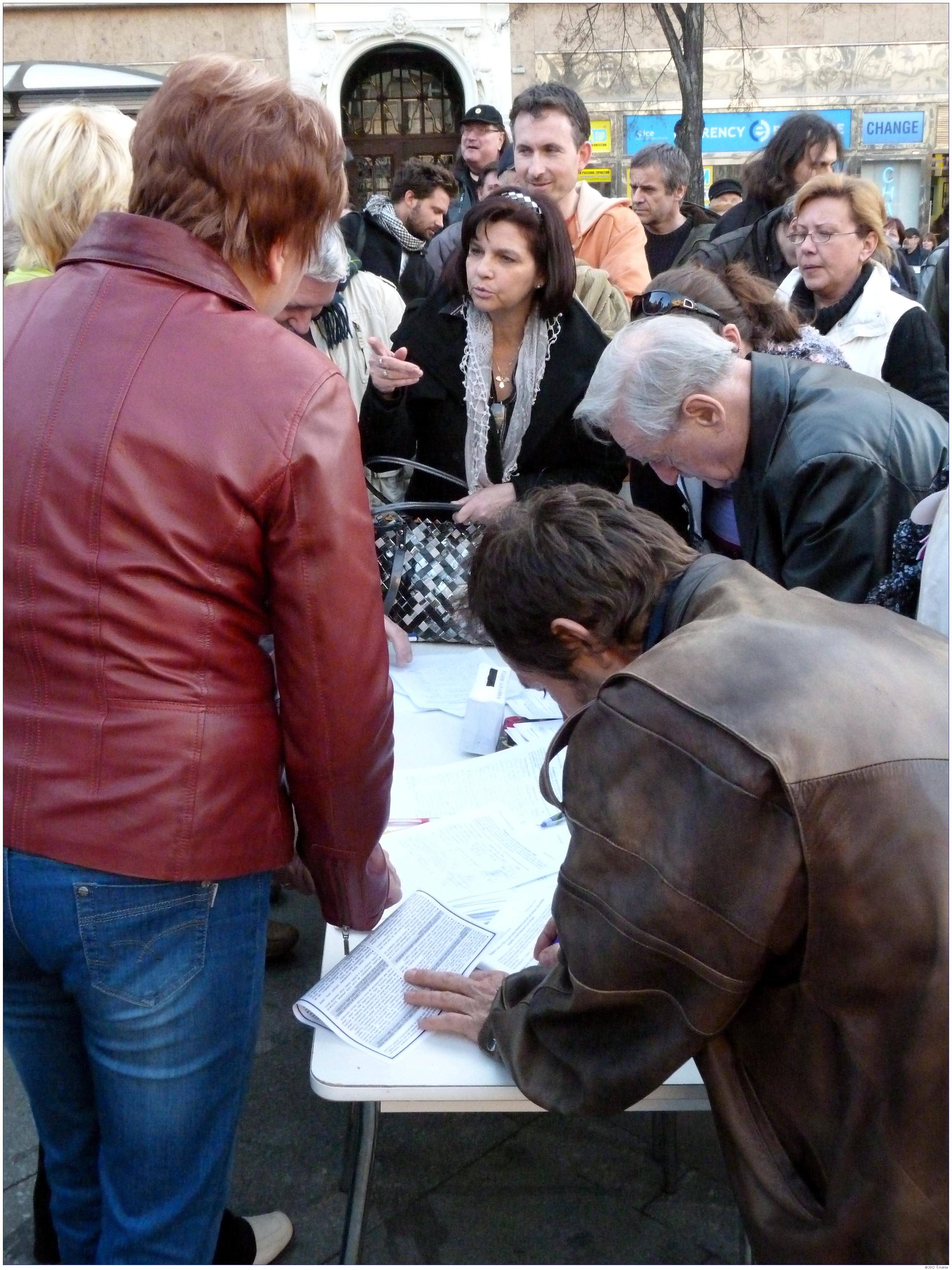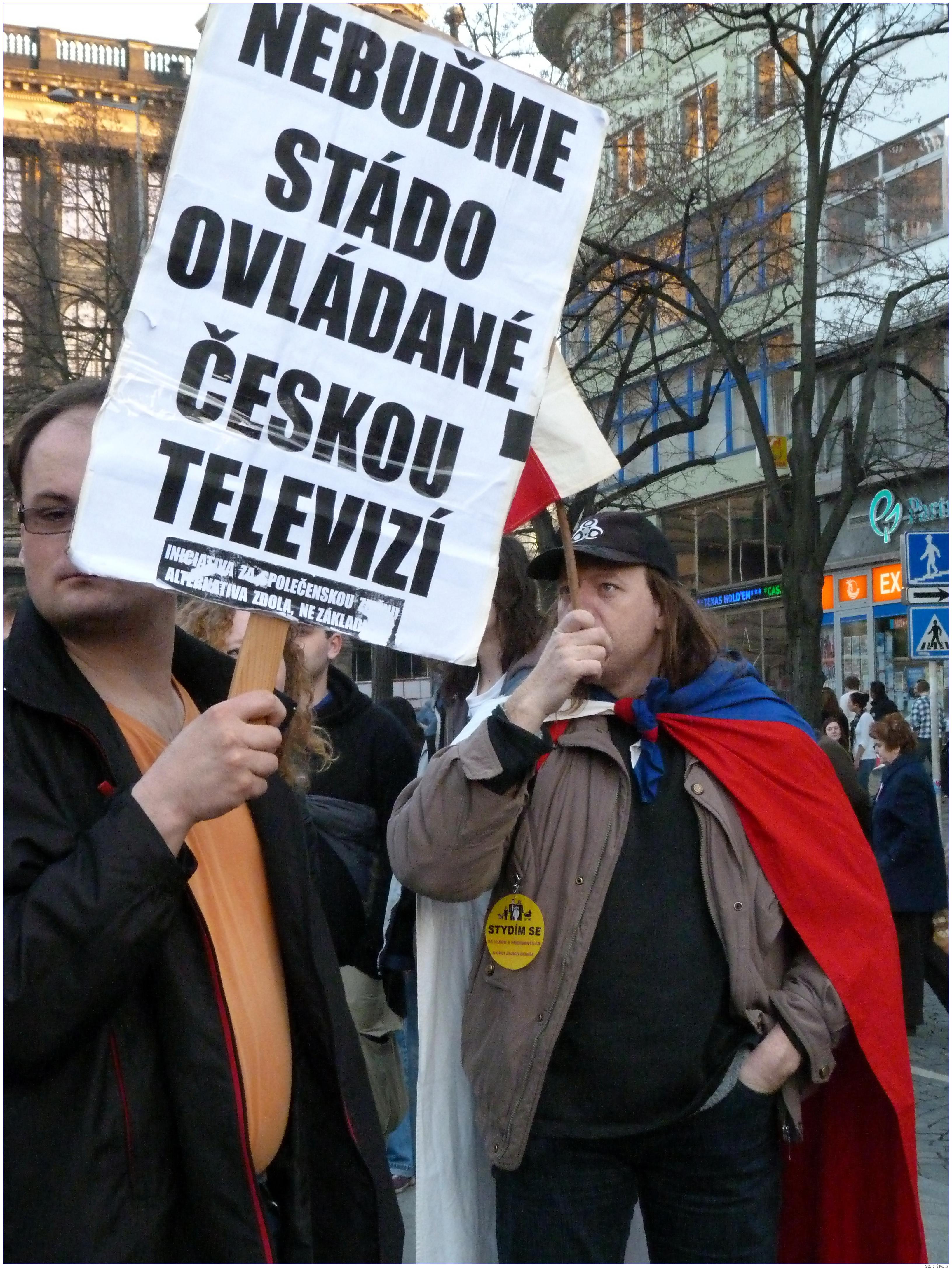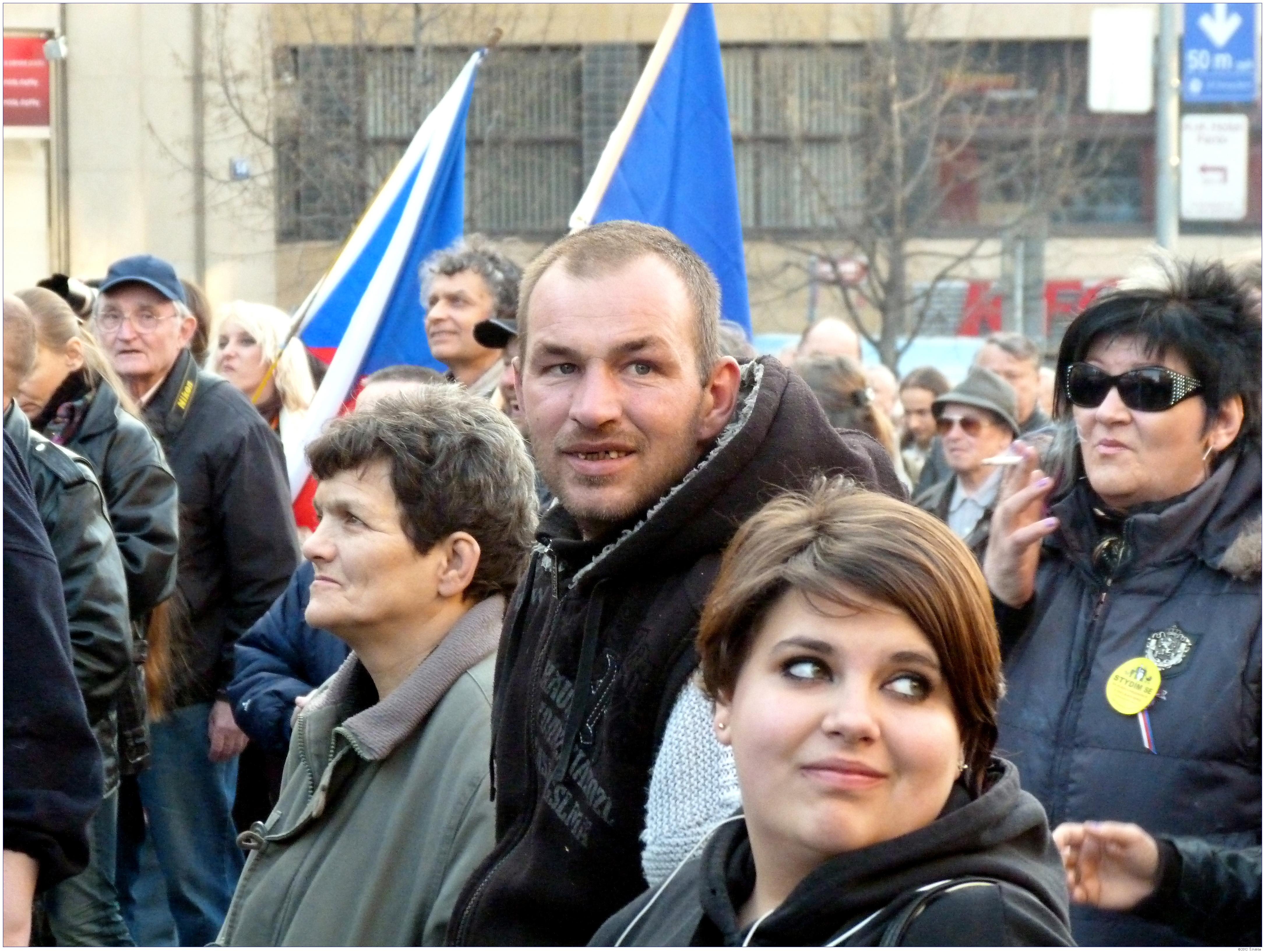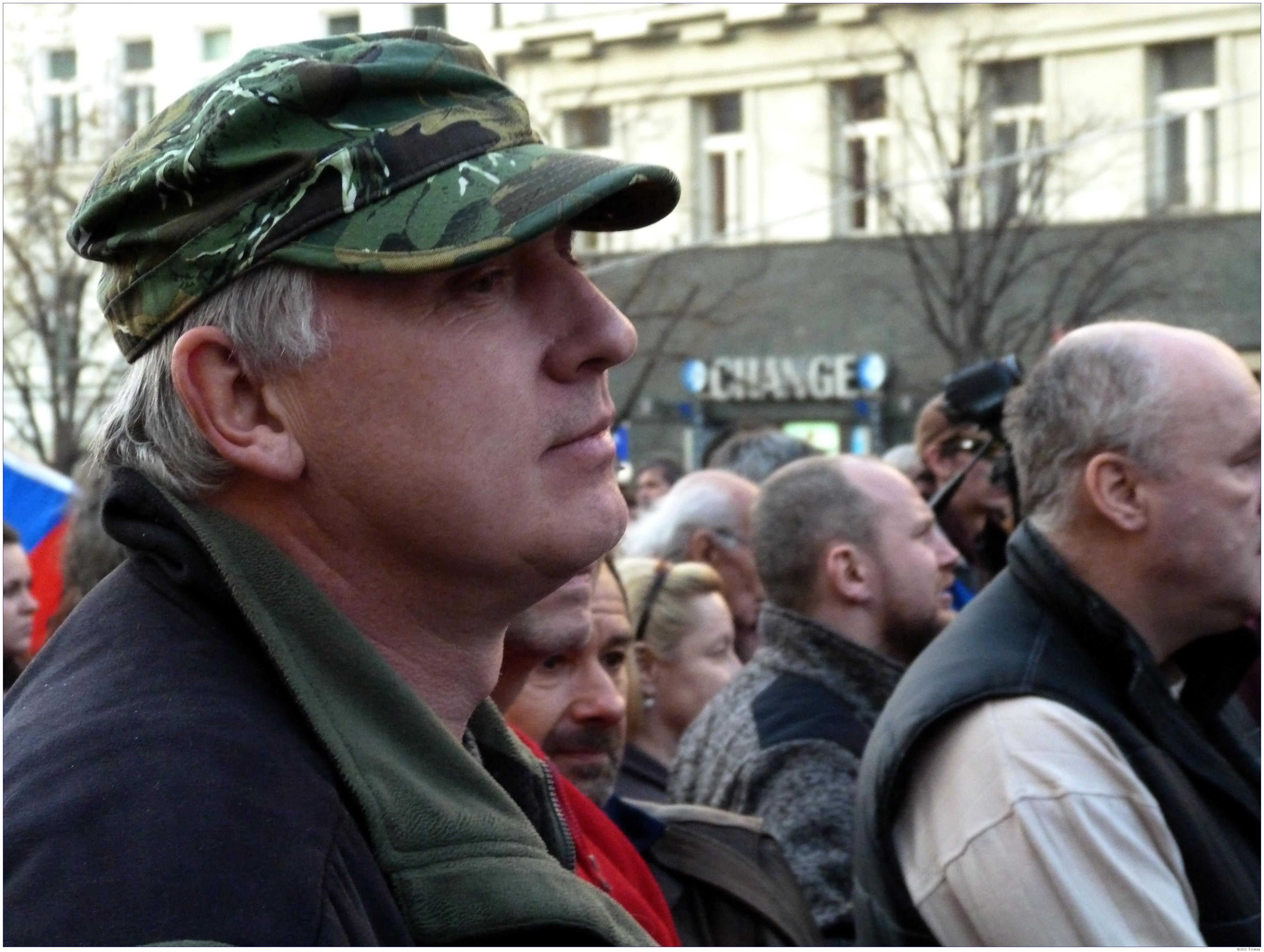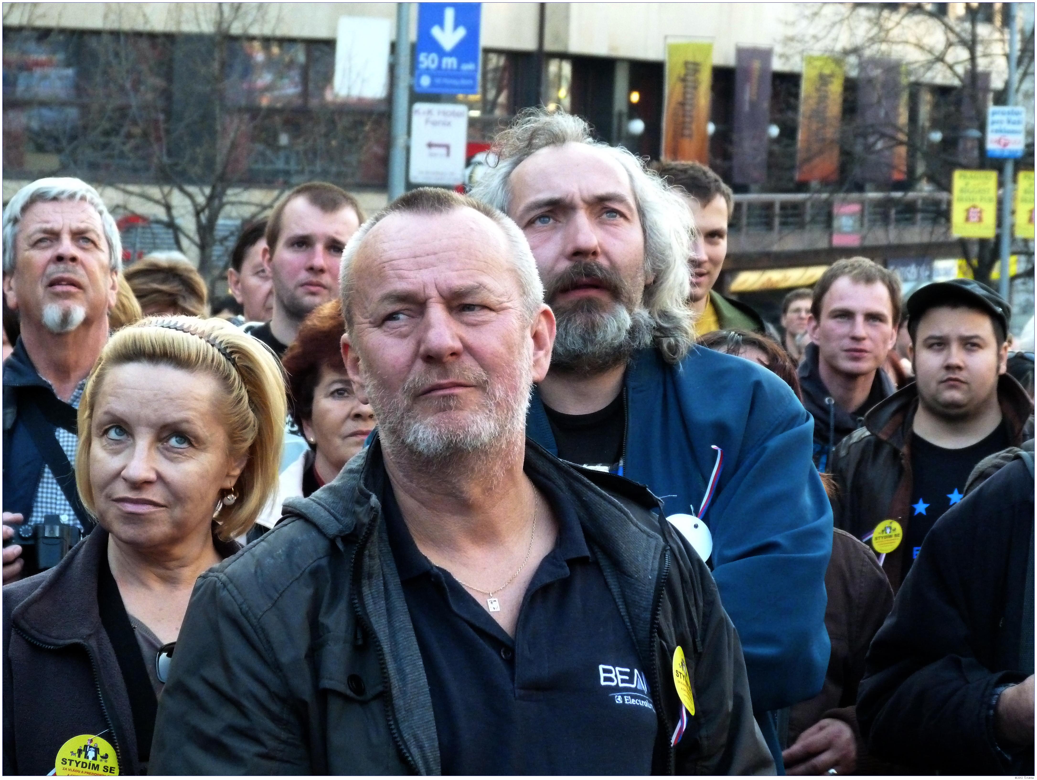 Demonstrace Marešovy "Opravdové demokracie" (SKDE), Popelkovy "Národní rady" (NR) a Ponertovy "Holešovské výzvy" Praha, 16. 3. 2012, Václavské náměstí